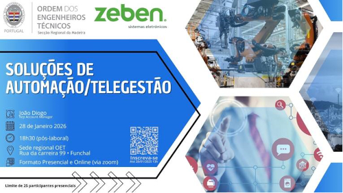 Reforçando o seu compromisso com a atualização técnica, a inovação e a promoção de boas práticas na engenharia, bem como fomentando o debate em torno de tecnologias emergentes aplicadas à automação e à gestão remota de sistemas, a Secção Regional da Madeira da Ordem dos Engenheiros Técnicos promoverá, no próximo dia 28 de janeiro de 2026 (quarta-feira), a partir das 18h30, um evento subordinado ao tema “Soluções de Automação e Telegestão”.